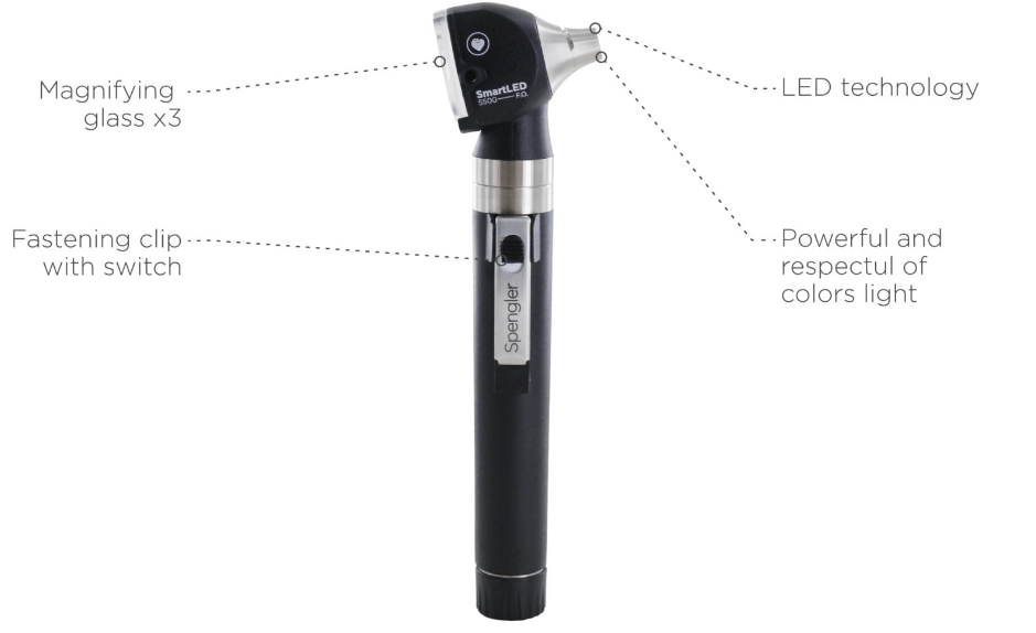 Smartled 5500 otoskops ir pārnēsājams, ļoti augstas precizitātes instruments, kas nodrošina izcilu apgaismojumu, pateicoties tā divkāršajai LED un optiskās šķiedras tehnoloģijai, ar 4000 K kolorimetriju un CRI (krāsu atveidošanas indeksu) 95 no 100.